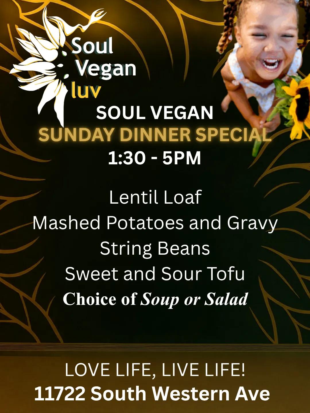 Soul Vegan Luv’s healthiest food for your body, served buffet-style, so you can enjoy an all-you-can-eat meal while learning about nourishing foods.