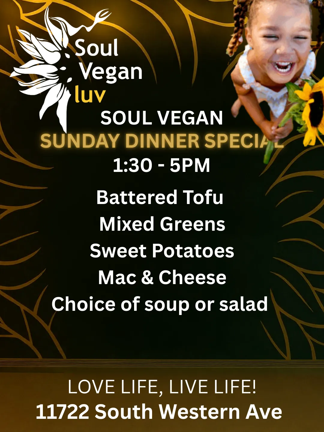 Soul Vegan Luv’s healthiest food for your body, served buffet-style, so you can enjoy an all-you-can-eat meal while learning about nourishing foods.